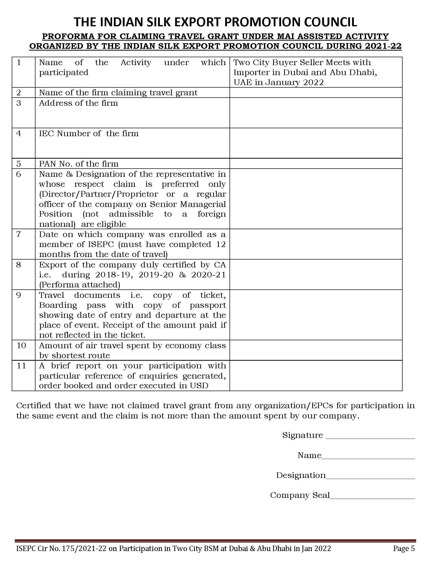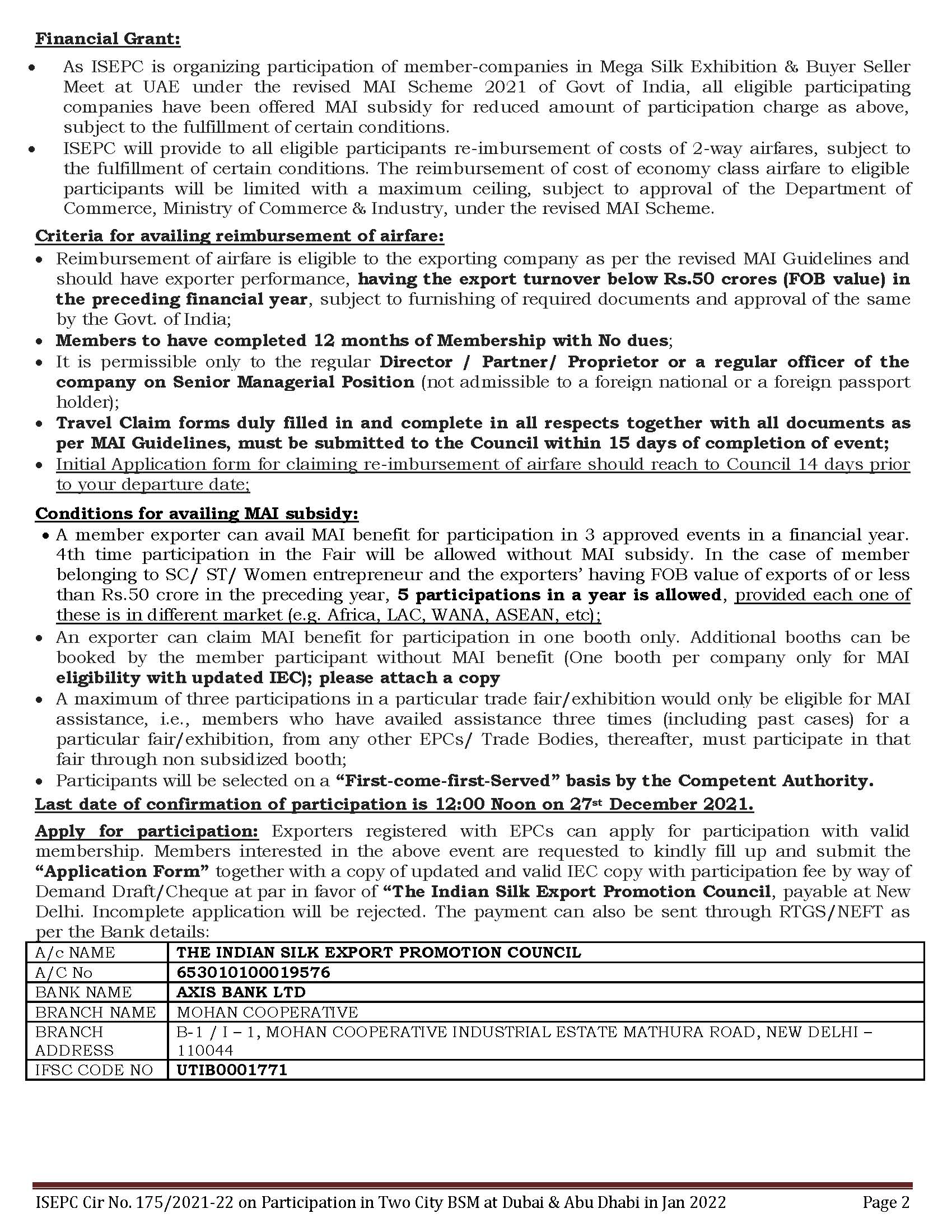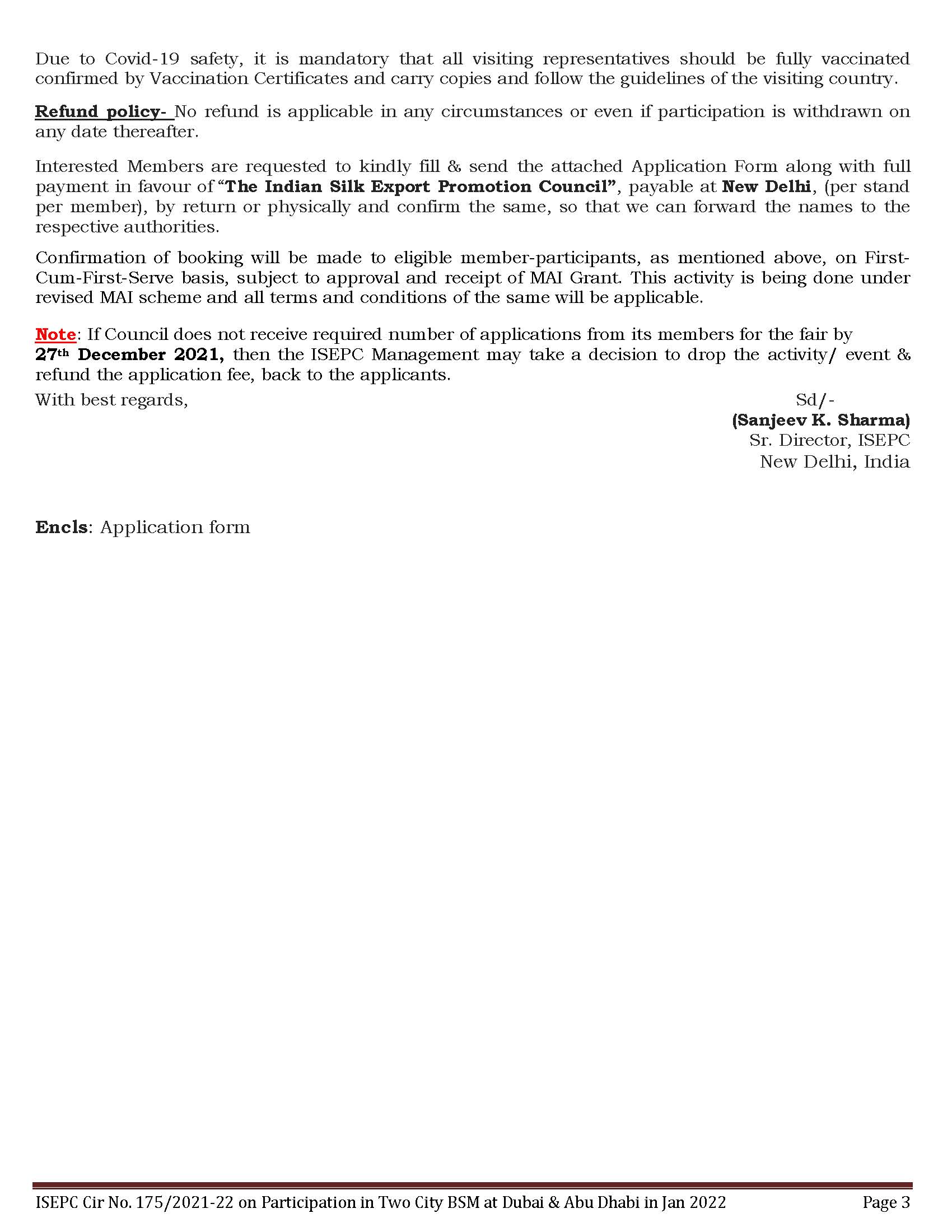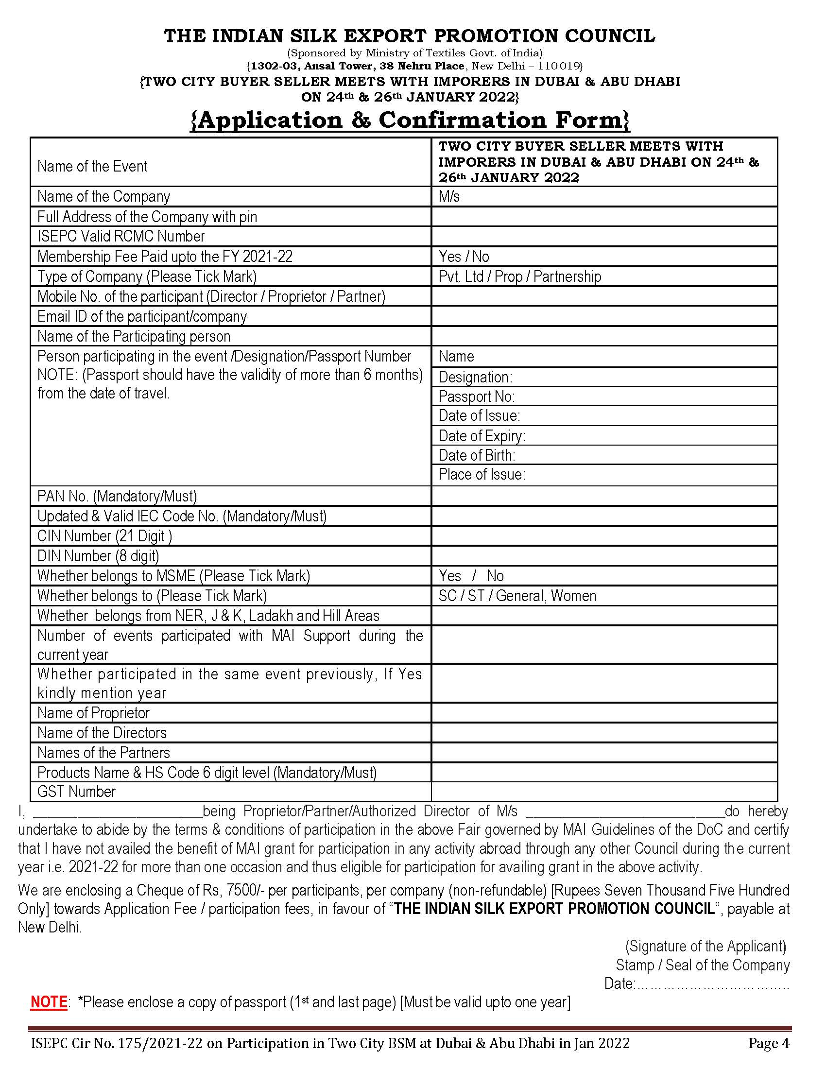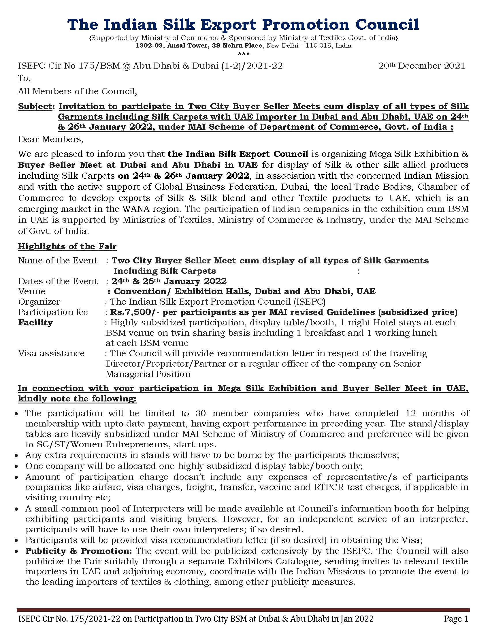 Participate in Two City Buyer Seller Meets cum display of all types of Silk Garments including Silk Carpets with UAE Importer in Dubai and Abu Dhabi, UAE on 24th & 26th January 2022
