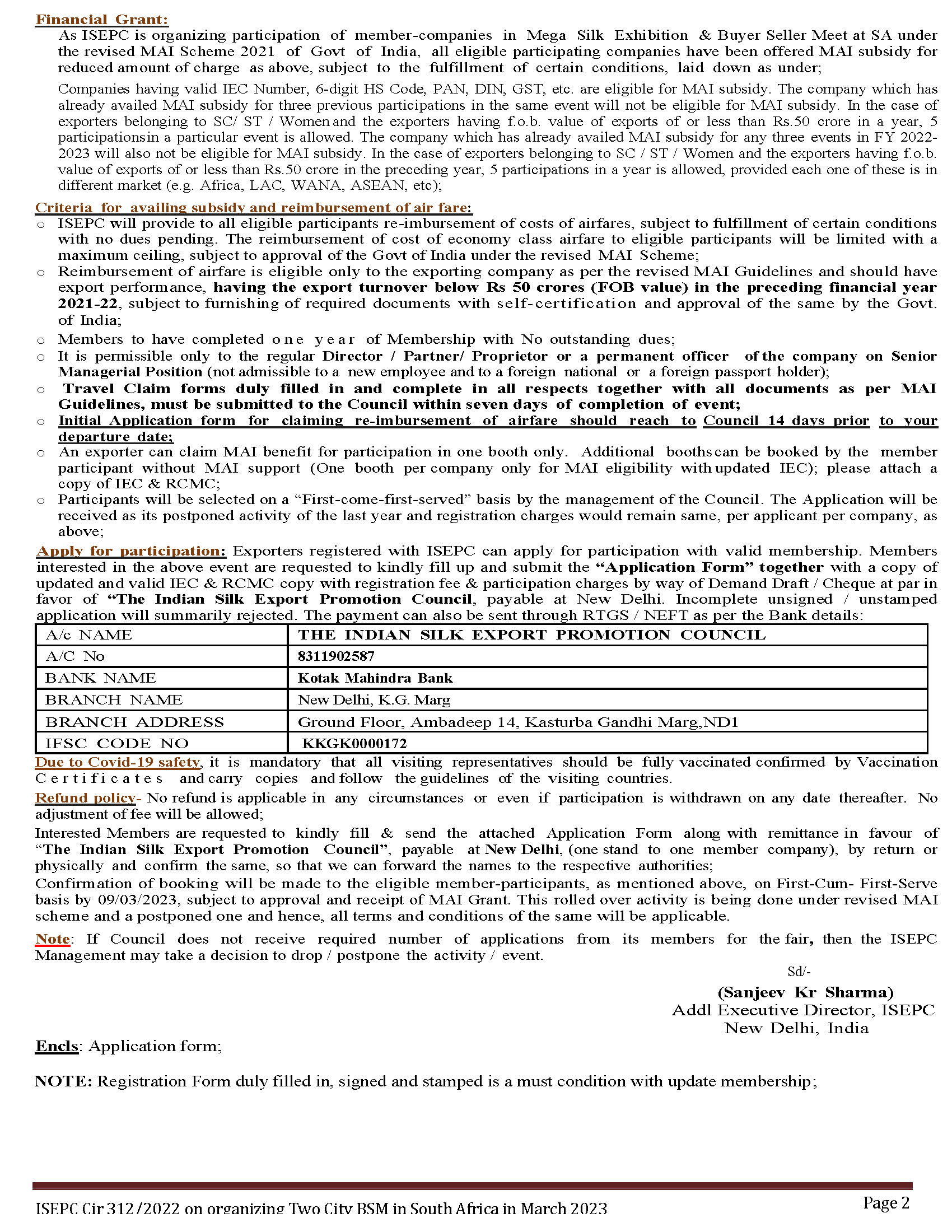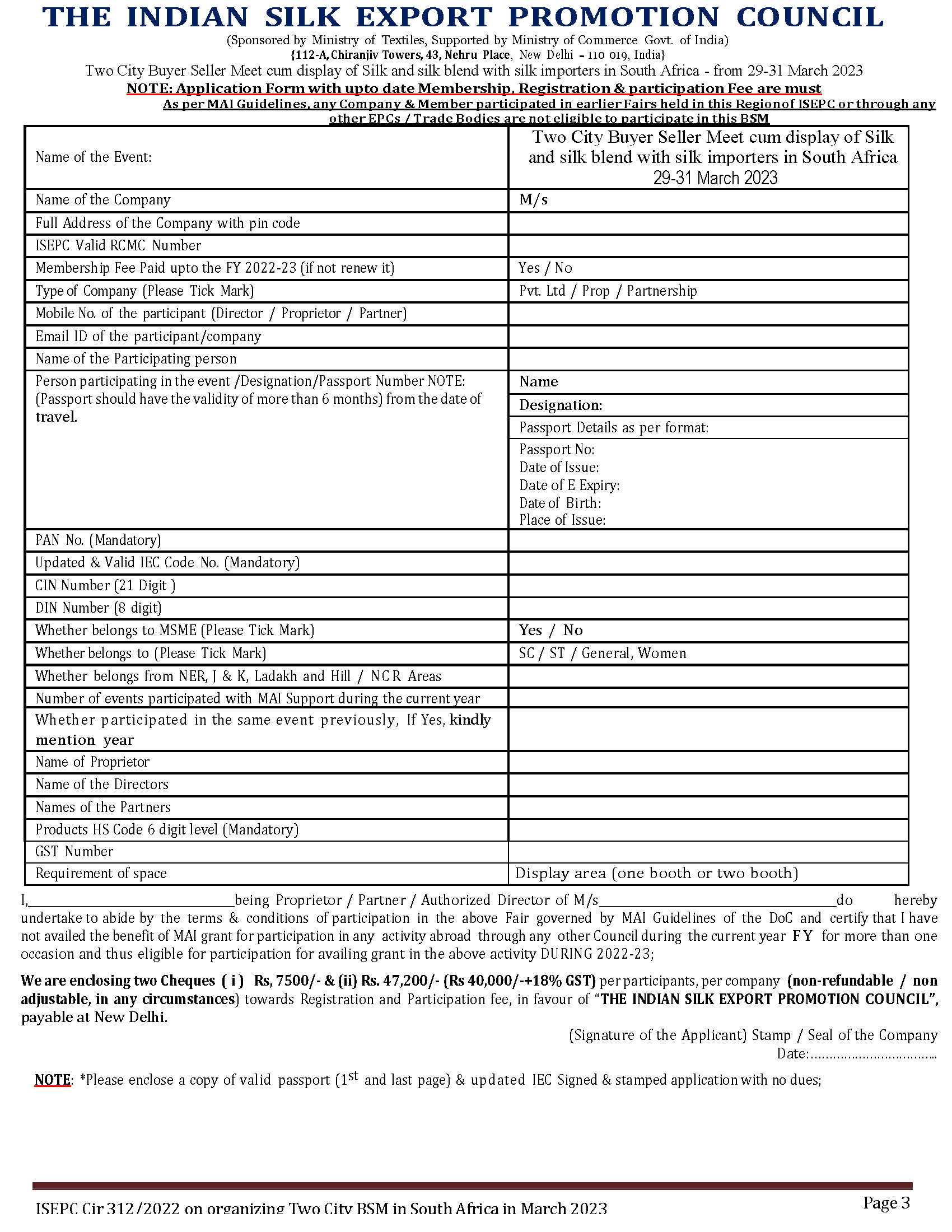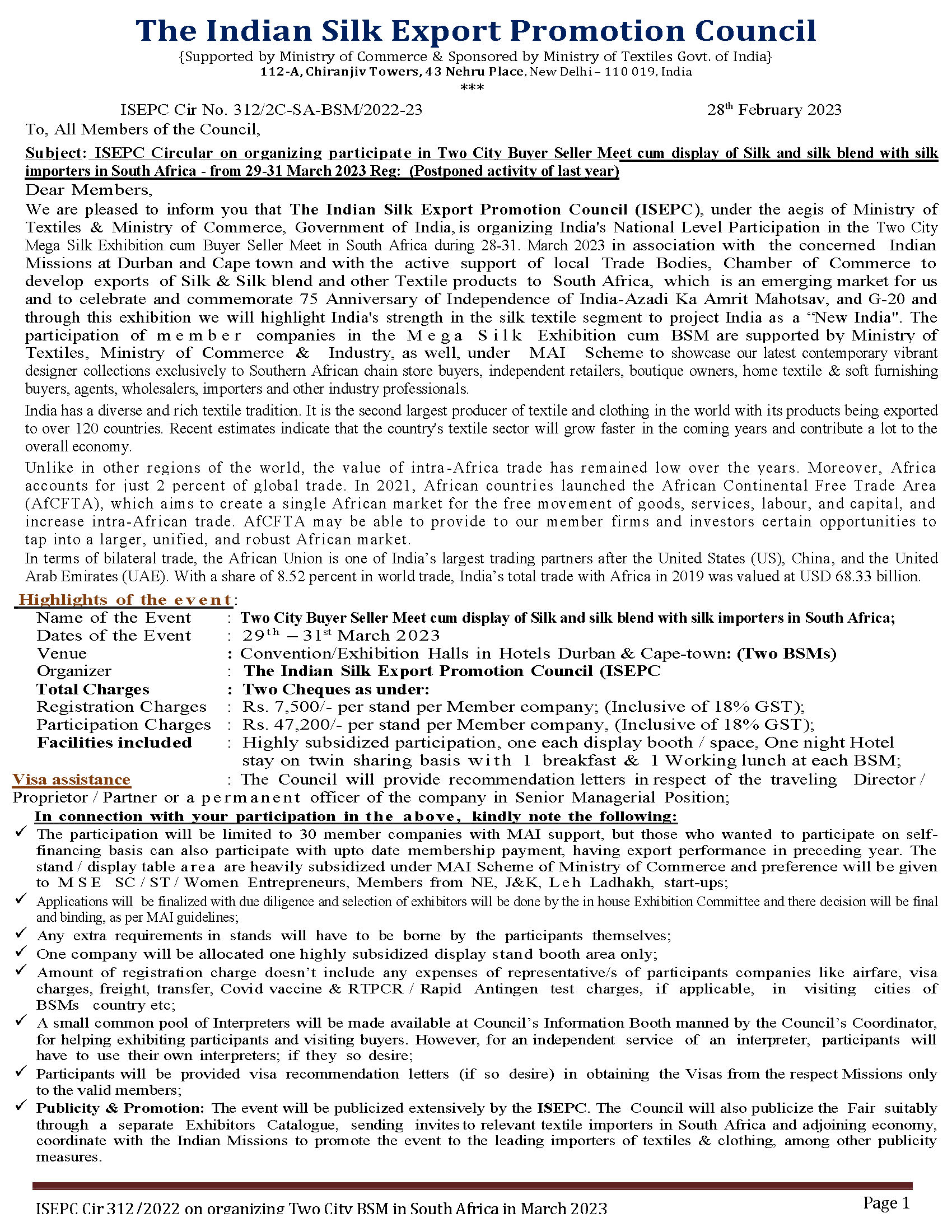 ISEPC Circular on organizing participate in Two City Buyer Seller Meet in South Africa - from 29-31 March 2023