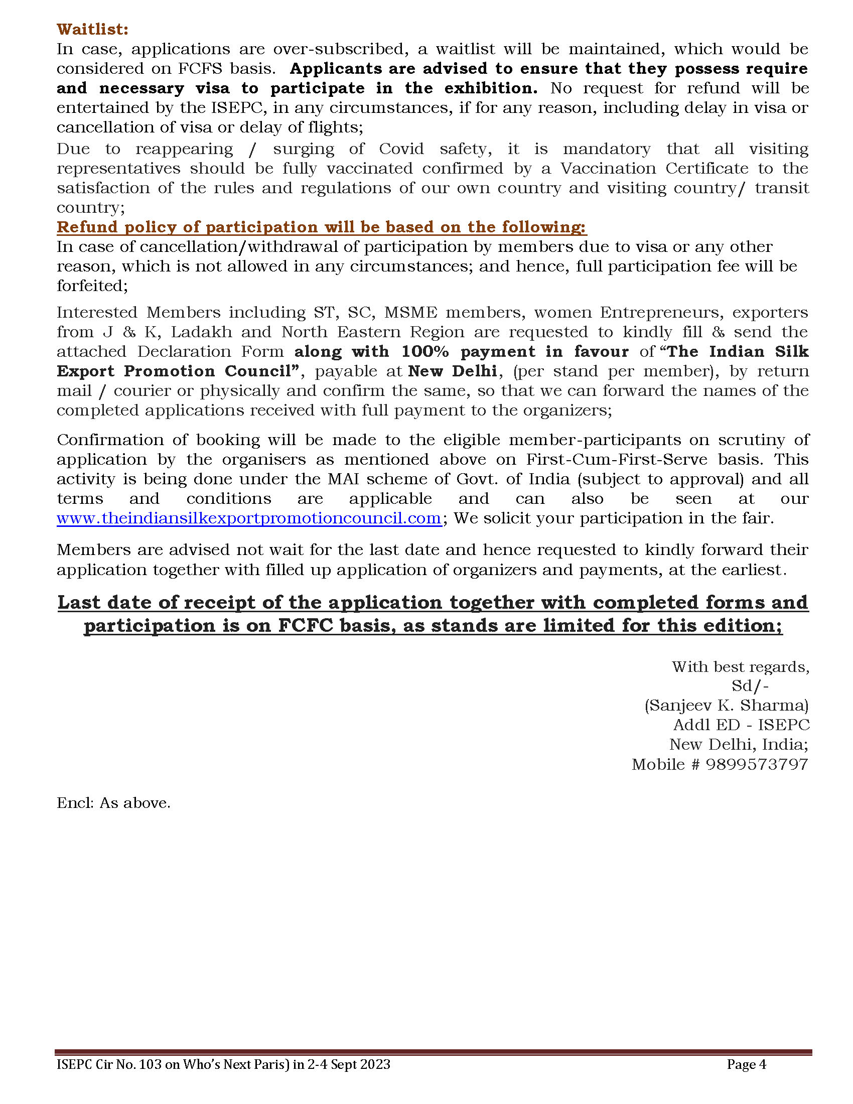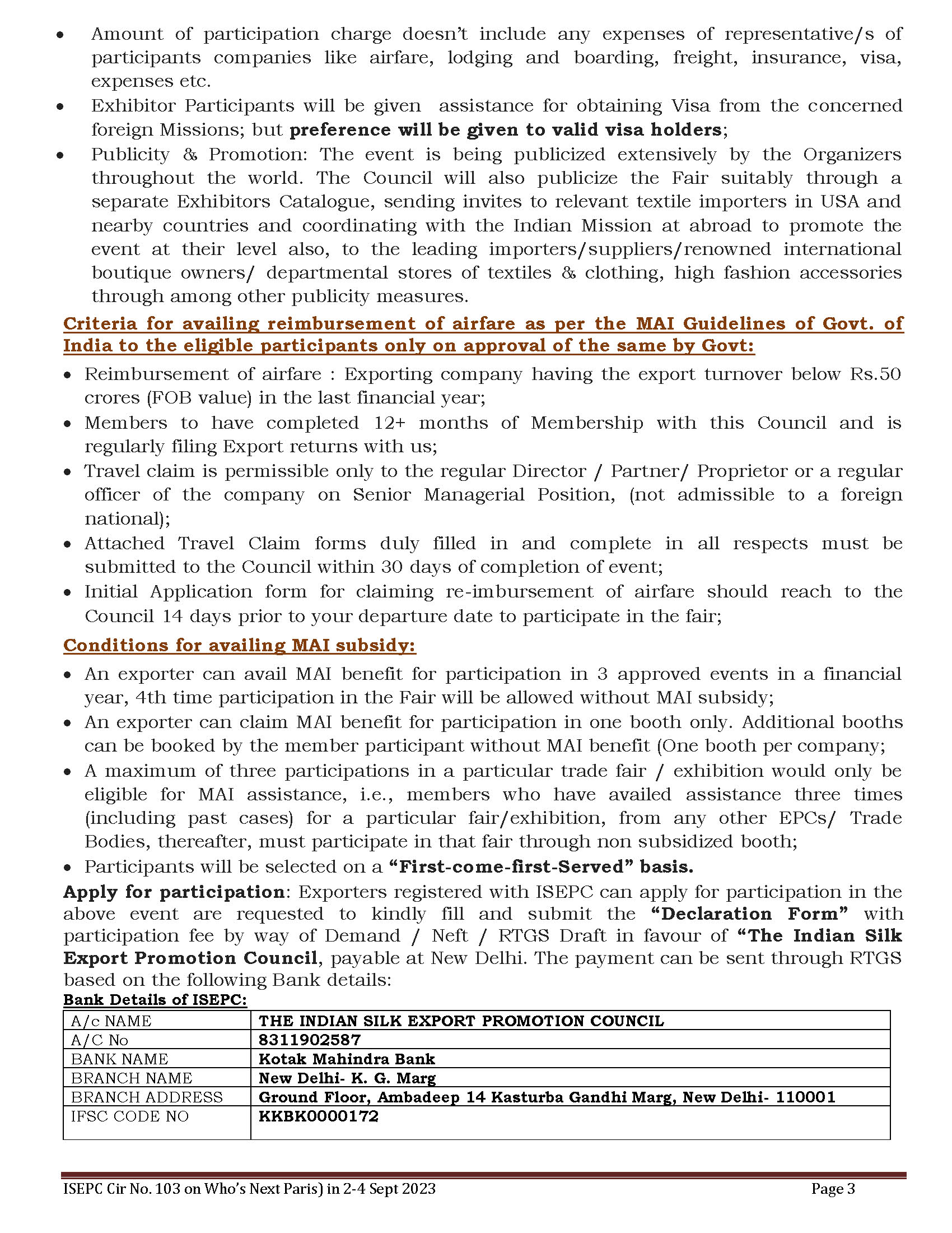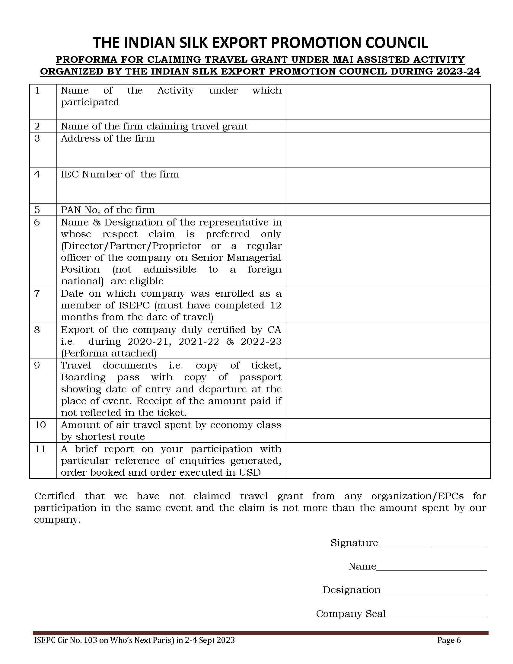 ISEPC Participation in Who’s Next (Paris) under MAI Scheme of Deptt of Commerce from 2-4 September 2023 at Porte de Versailles, Paris