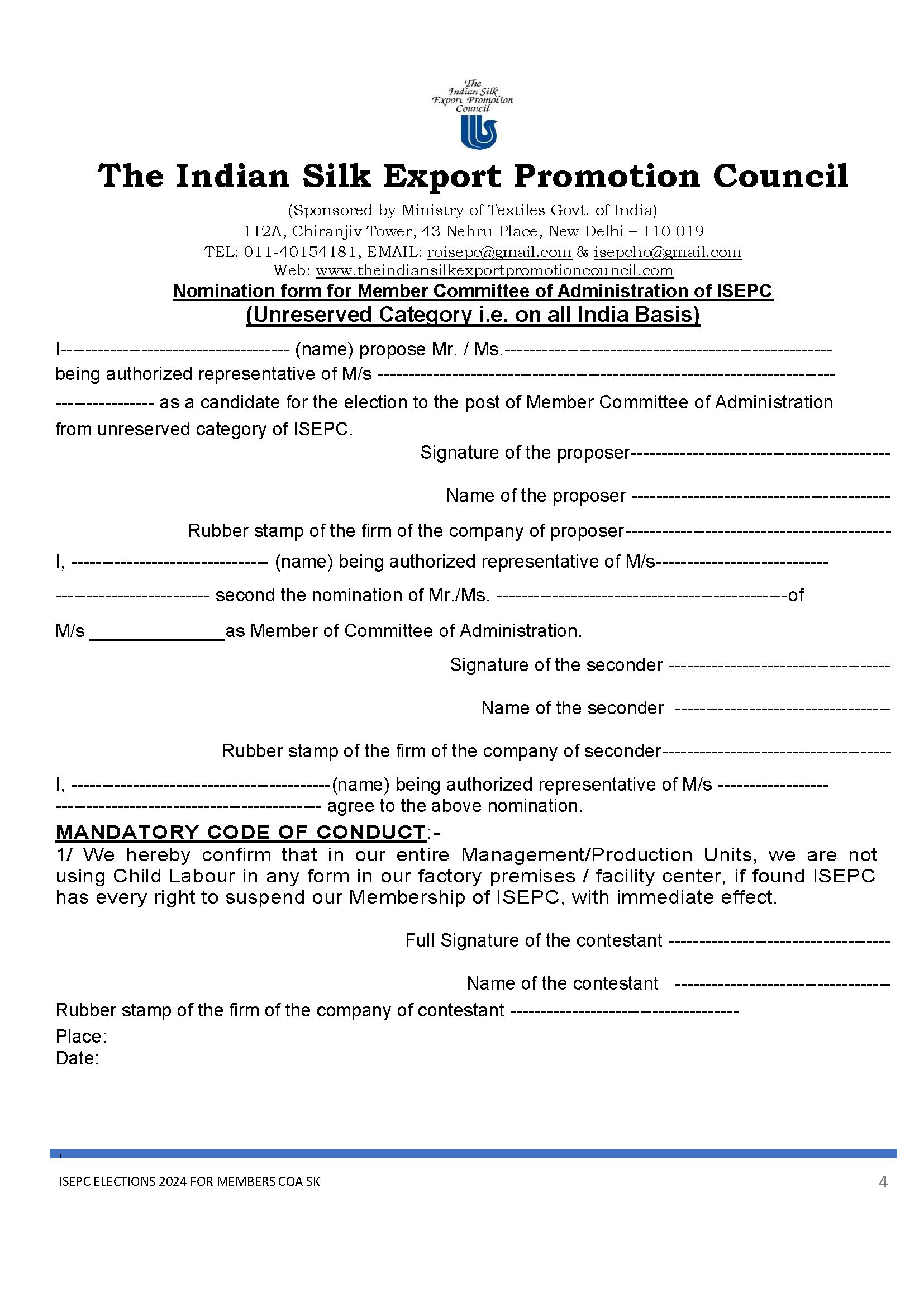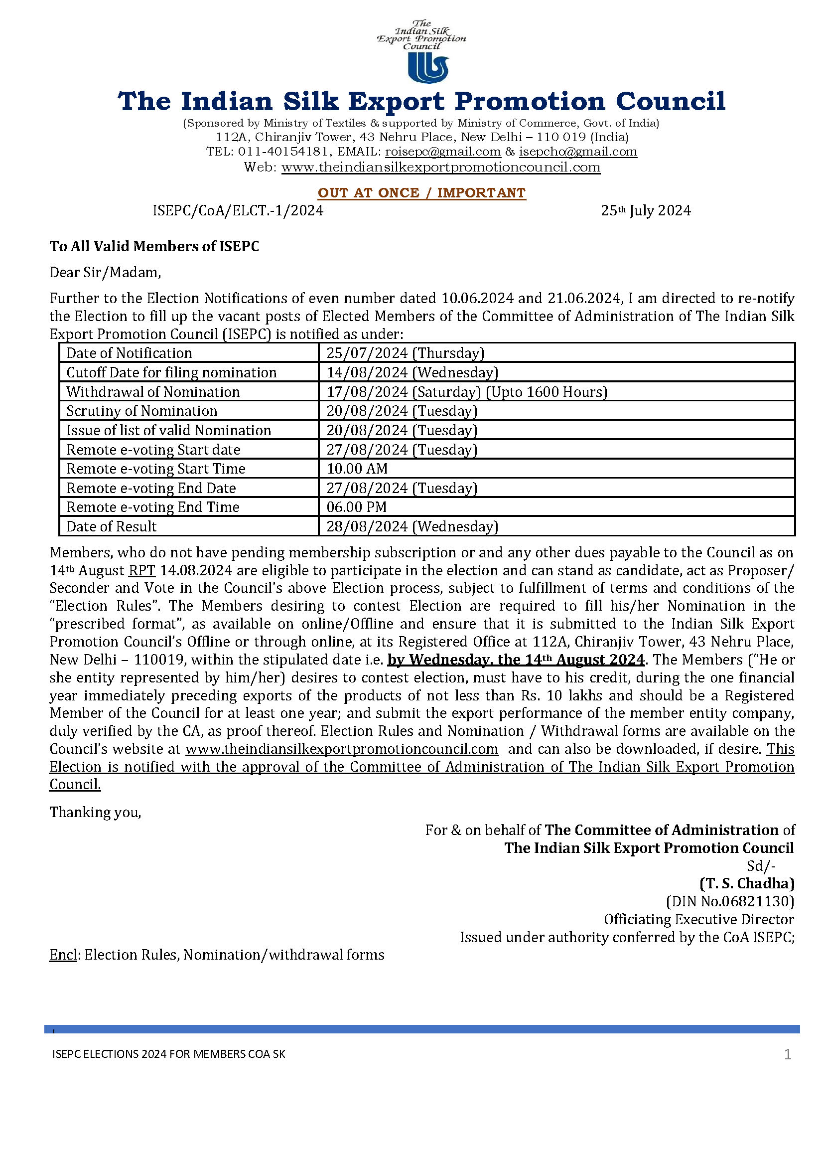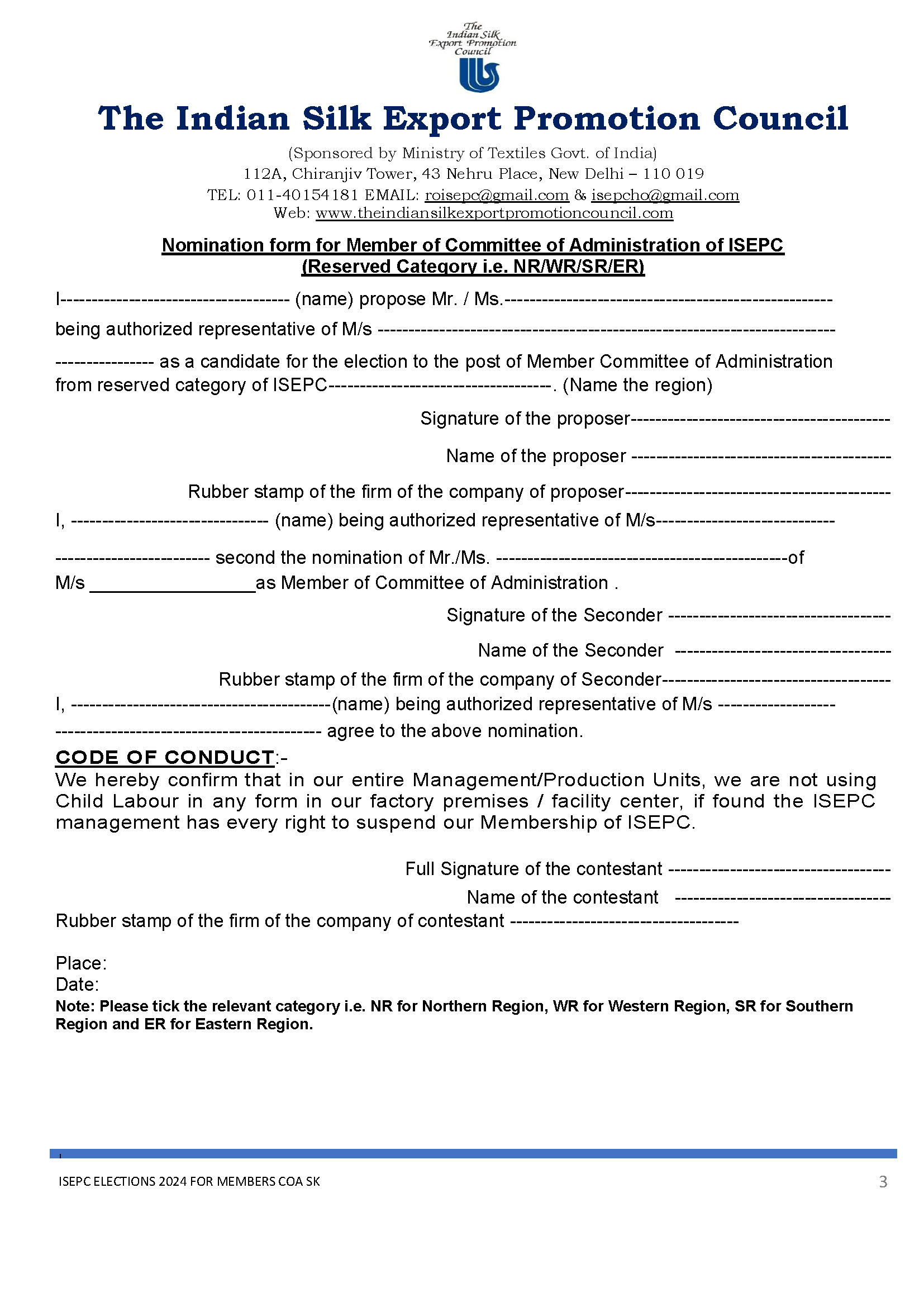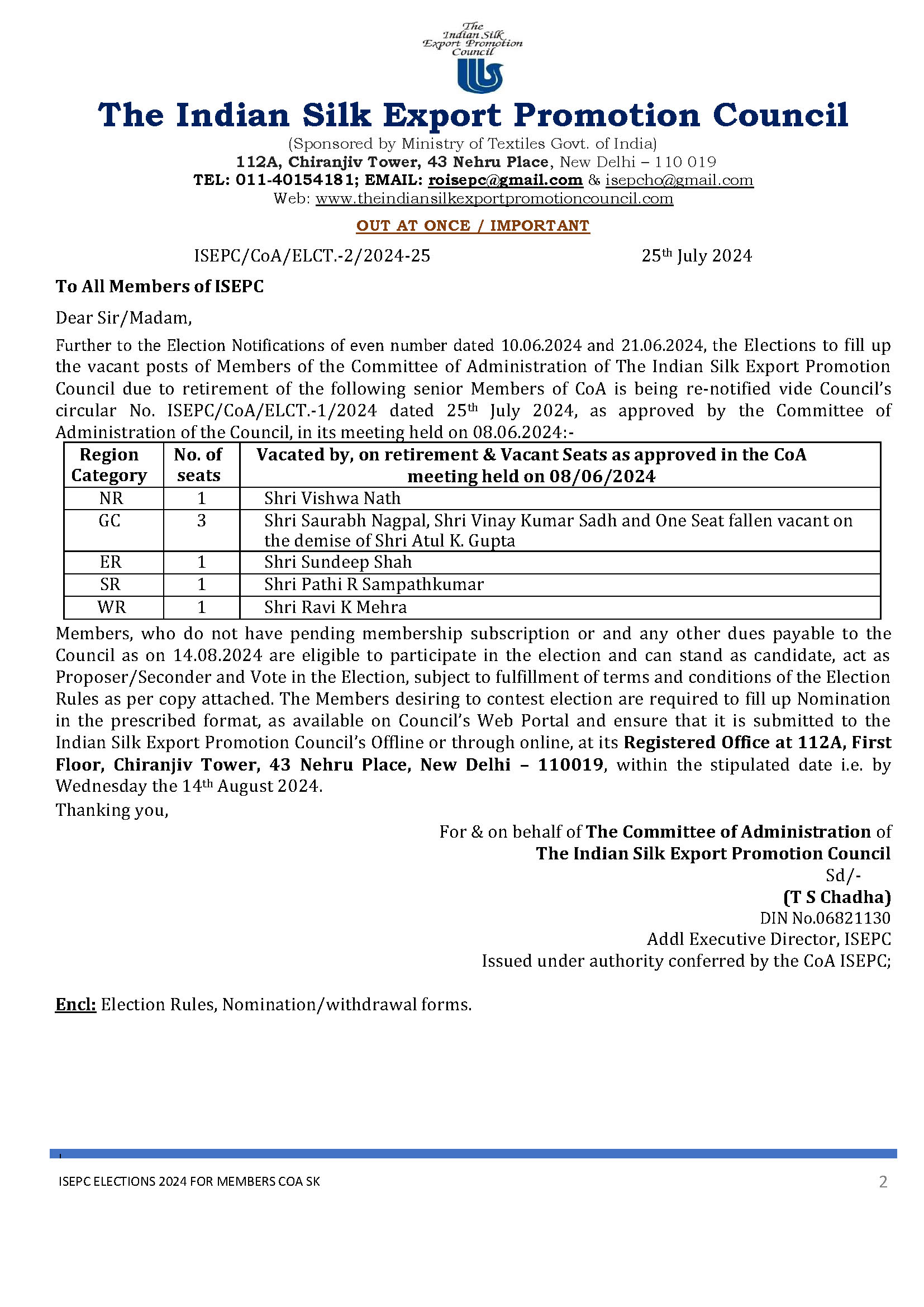 Election Notification 2024 for the Vacant posts of retiring elected members in the Committee of Administration of ISEPC