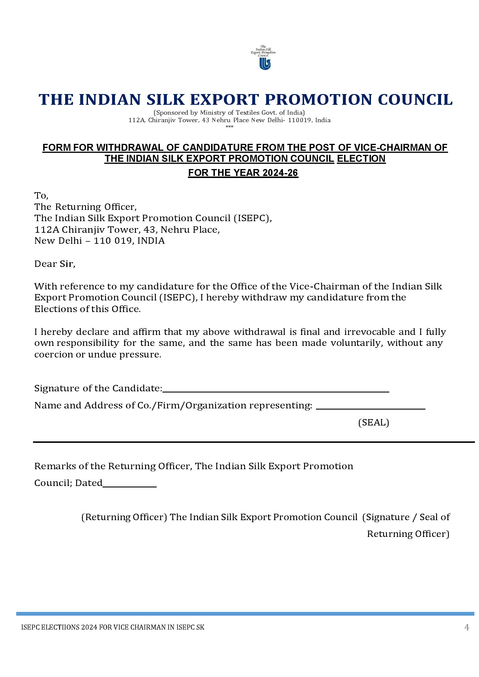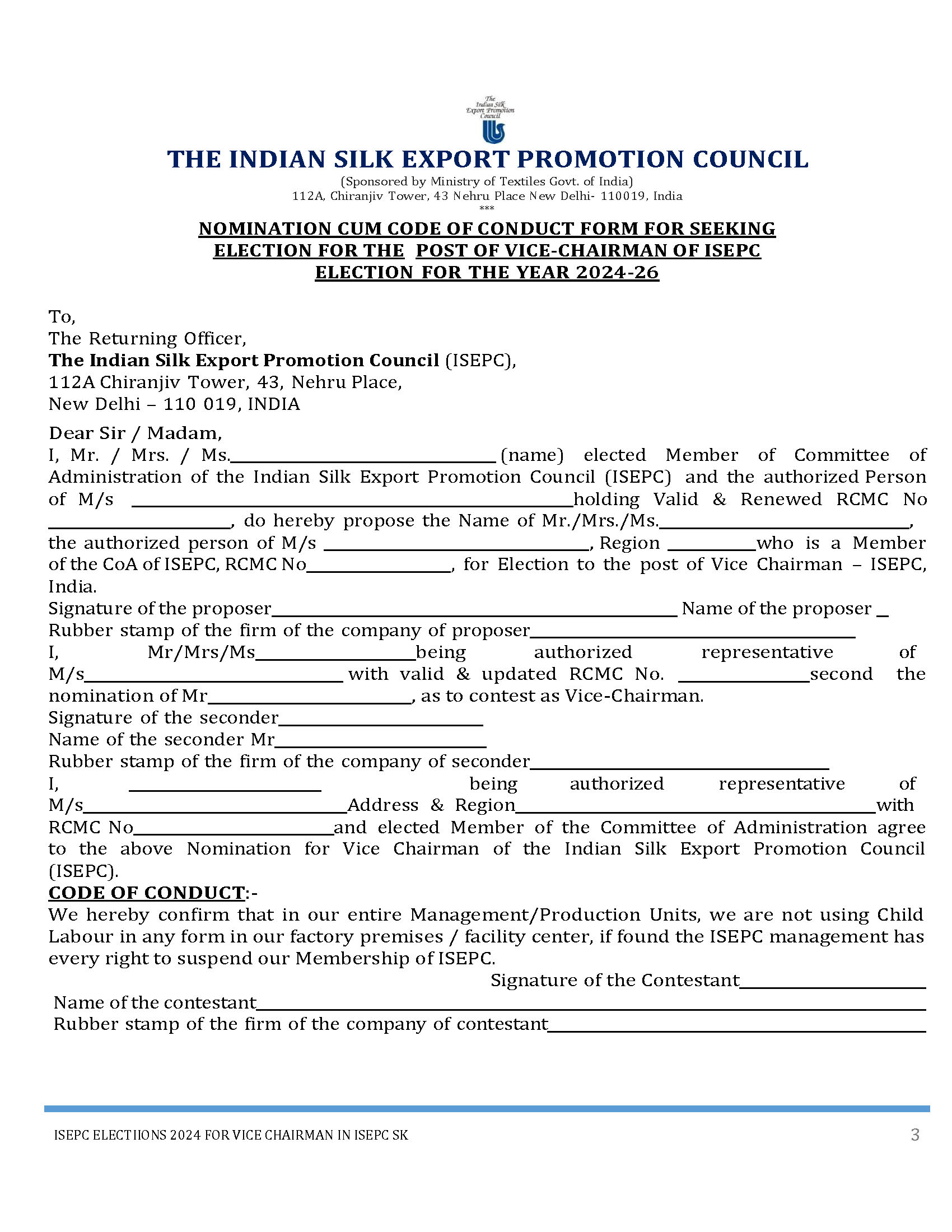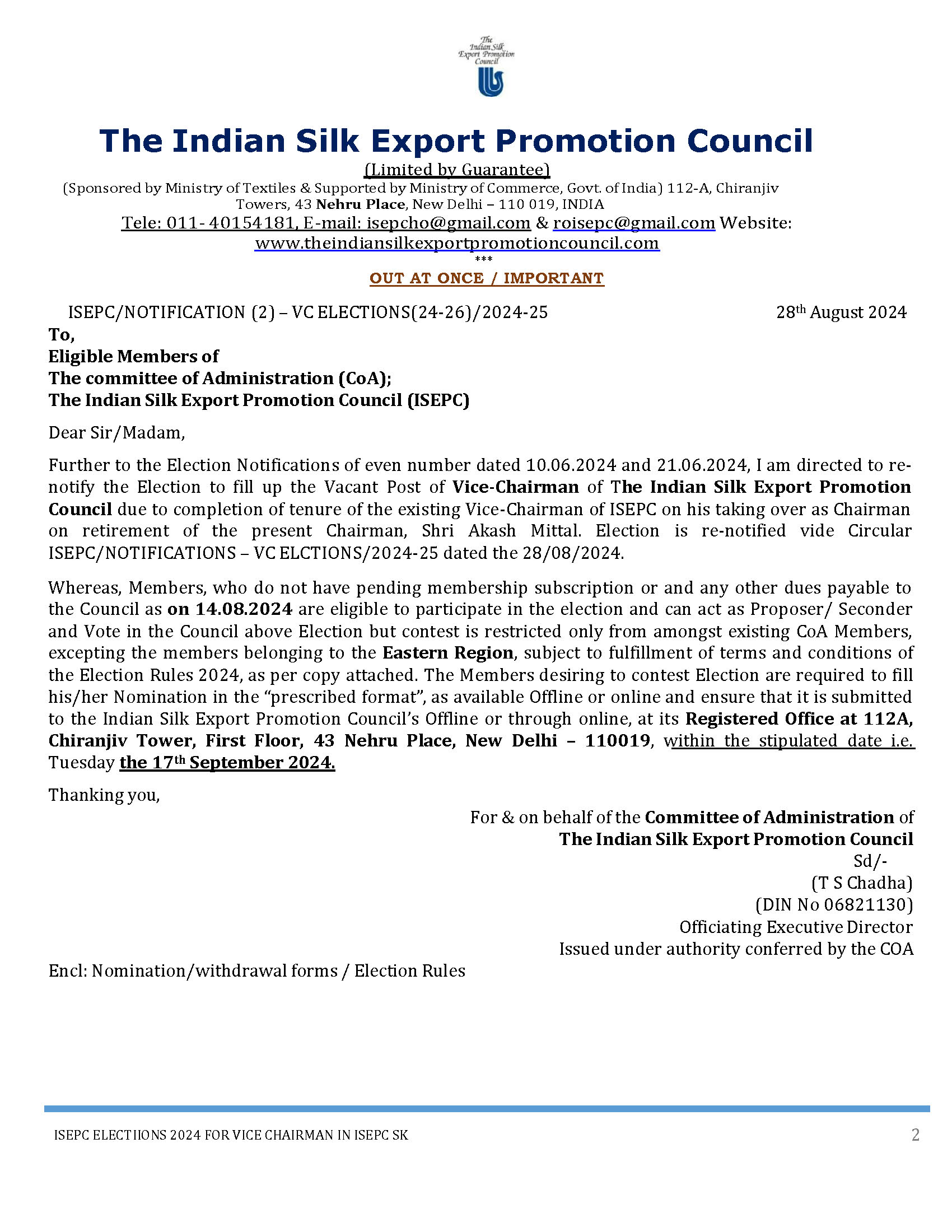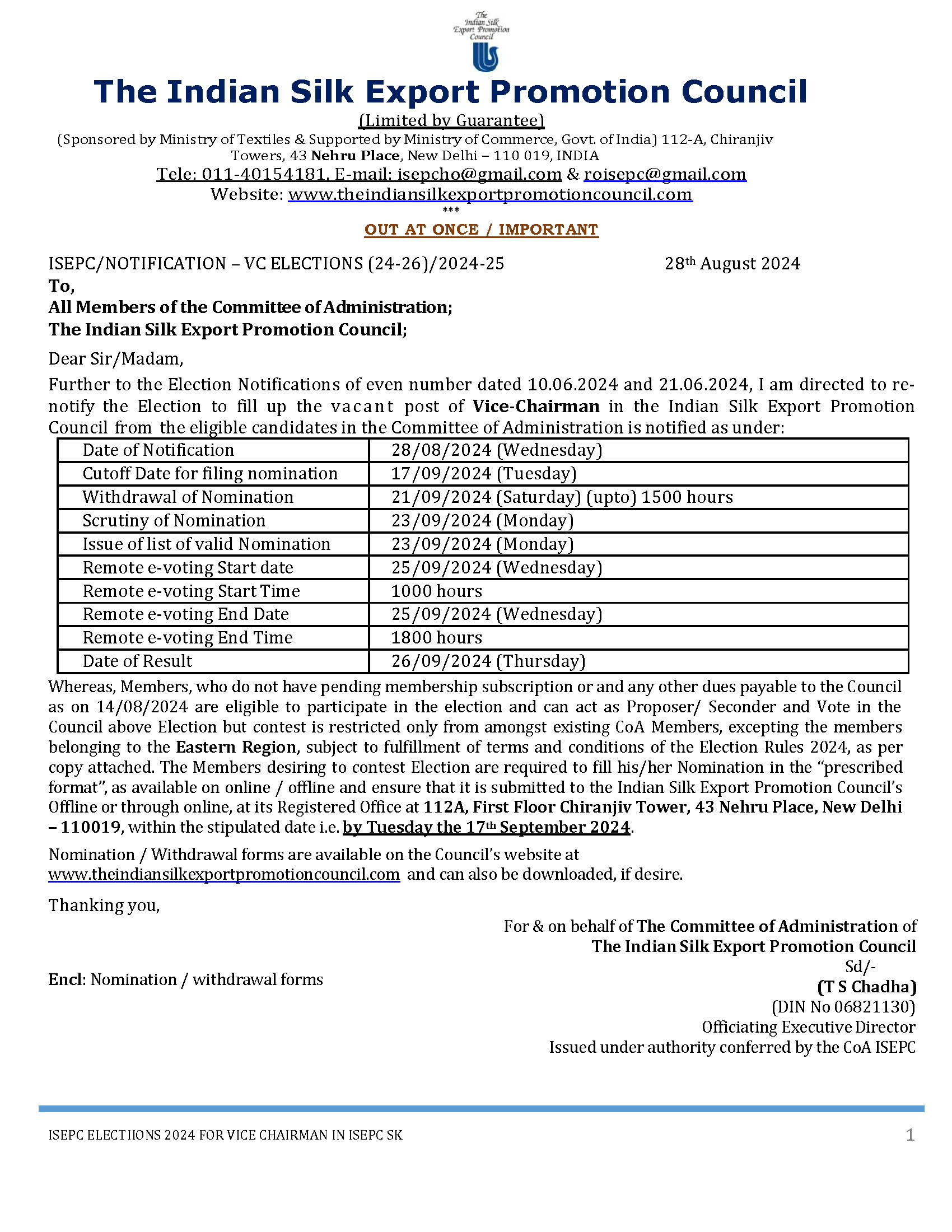 ISEPC ELECTION NOTIFICATION Notified for Election 2024 in ISEPC - Election to the retiring post of Vice Chairman in ISEPC