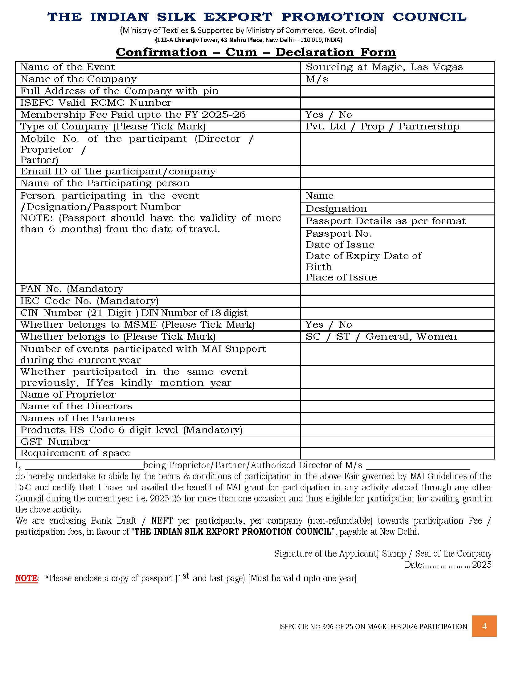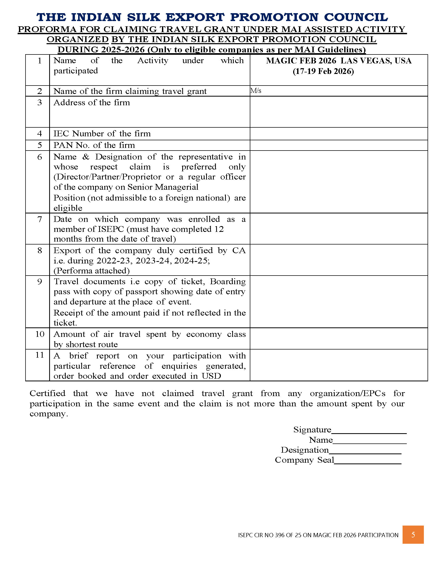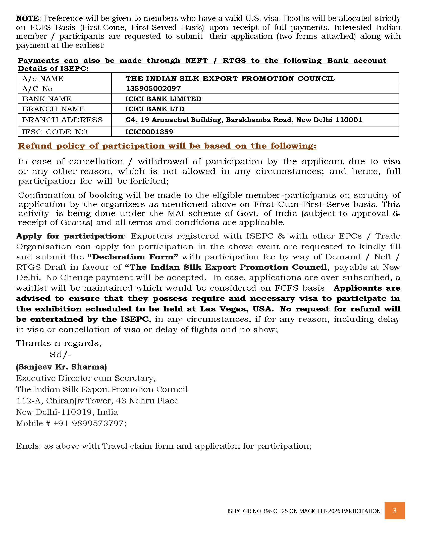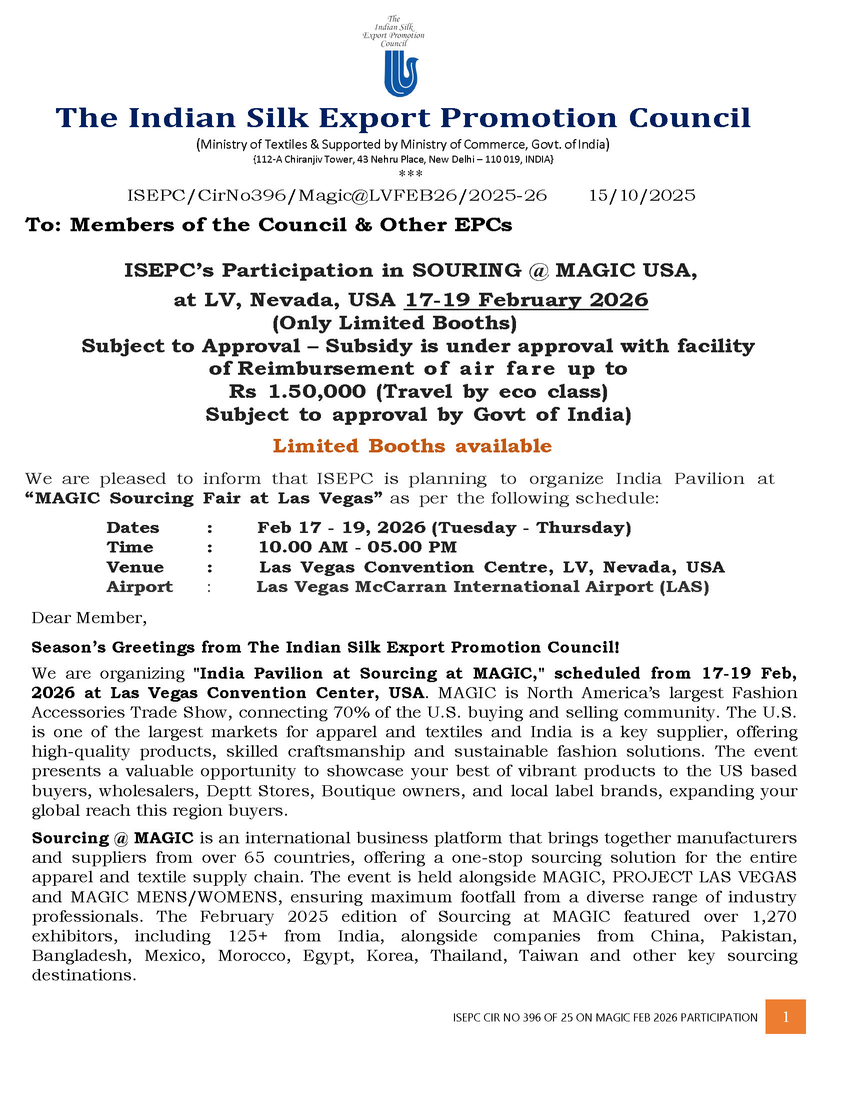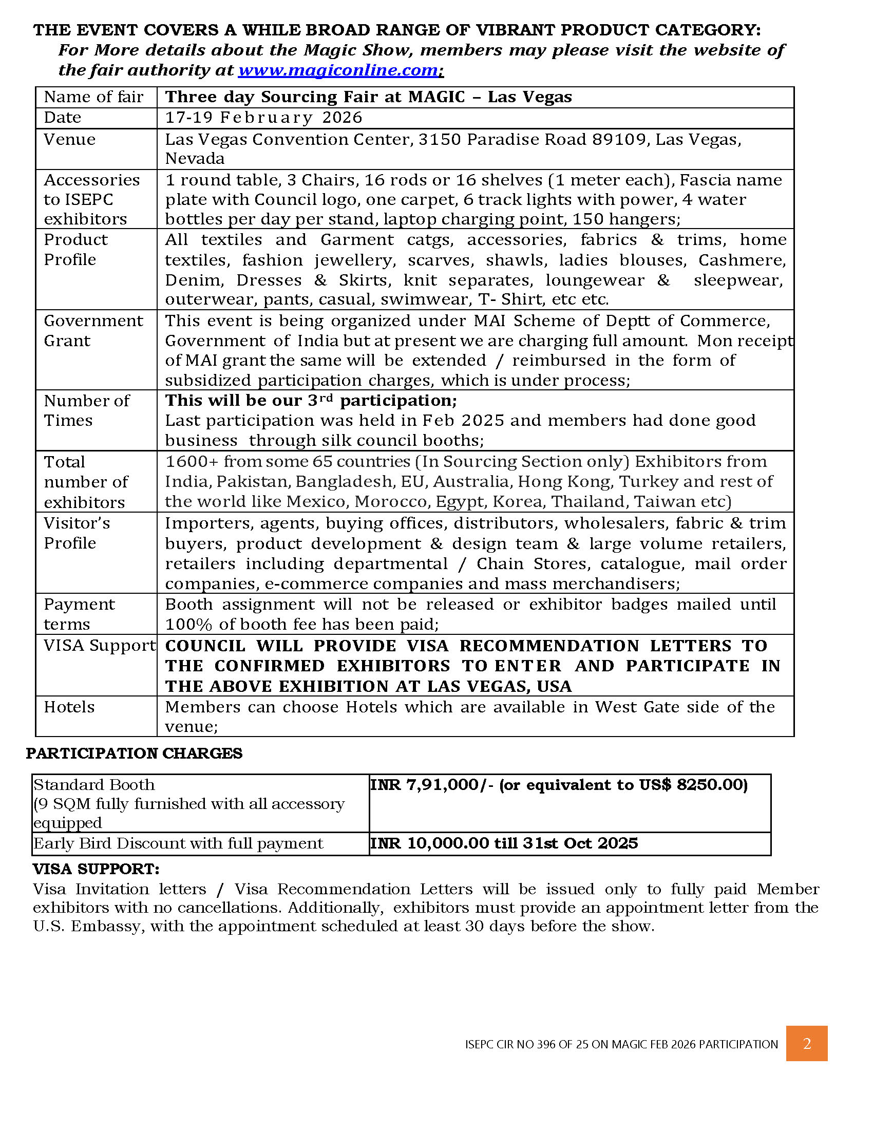 Boarding for Las Vegas Started for your particiaption in Magic 17-19 Feb 2026 Fair with 16/2/2026 is the allotment date