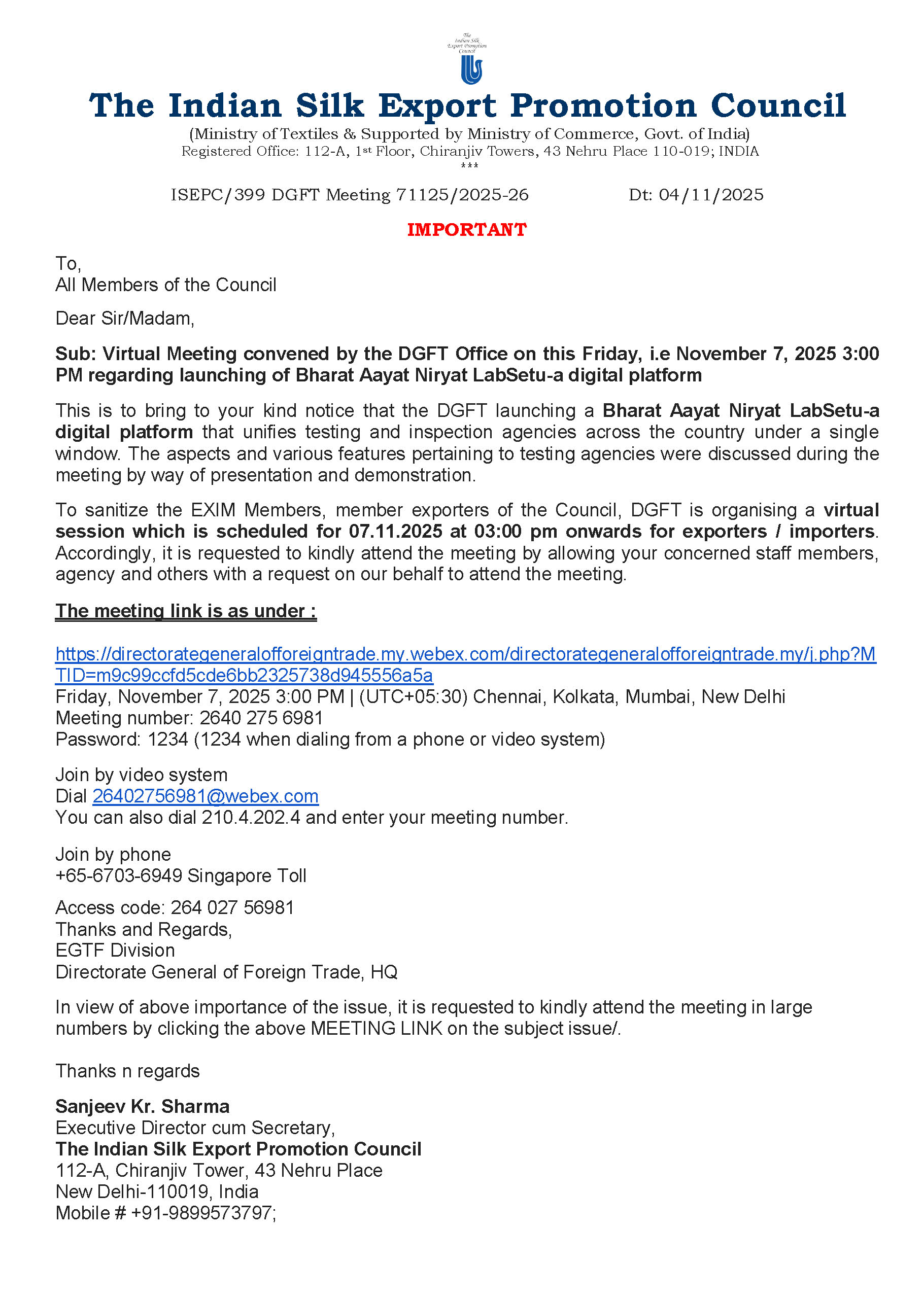 Link for Meeting : https://directorategeneralofforeigntrade.my.webex.com/directorategeneralofforeigntrade.my/j.php?MTID=m9c99ccfd5cde6bb2325738d945556a5a